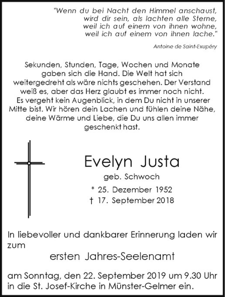 Hier finden Sie alle Traueranzeigen aus der Zeitung, die bisher für Evelyn Justa erschienen sind. Weitere Traueranzeigen, die in der Zeitung erscheinen, werden hier ebenfalls aufgelistet