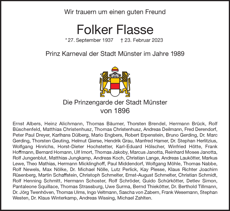 Hier finden Sie alle Traueranzeigen aus der Zeitung, die bisher für Folker Flasse erschienen sind. Weitere Traueranzeigen, die in der Zeitung erscheinen, werden hier ebenfalls aufgelistet