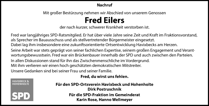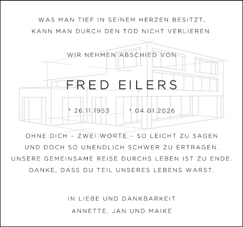 Hier finden Sie alle Traueranzeigen aus der Zeitung, die bisher für Fred Eilers erschienen sind. Weitere Traueranzeigen, die in der Zeitung erscheinen, werden hier ebenfalls aufgelistet