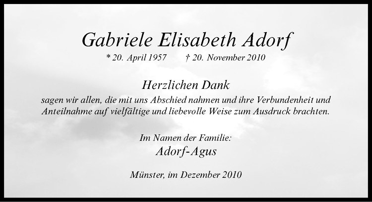 Hier finden Sie alle Traueranzeigen aus der Zeitung, die bisher für Gabriele Elisabeth Adorf erschienen sind. Weitere Traueranzeigen, die in der Zeitung erscheinen, werden hier ebenfalls aufgelistet