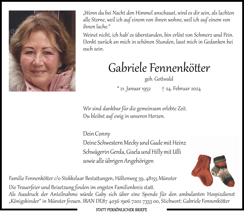 Hier finden Sie alle Traueranzeigen aus der Zeitung, die bisher für Gabriele Fennenkötter erschienen sind. Weitere Traueranzeigen, die in der Zeitung erscheinen, werden hier ebenfalls aufgelistet