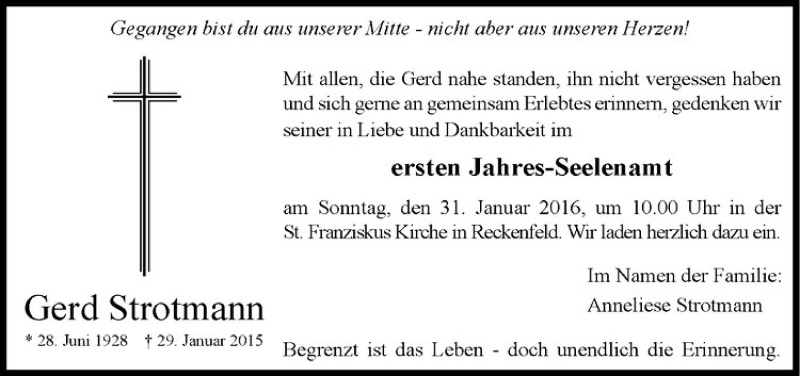 Hier finden Sie alle Traueranzeigen aus der Zeitung, die bisher für Gerd Strotmann erschienen sind. Weitere Traueranzeigen, die in der Zeitung erscheinen, werden hier ebenfalls aufgelistet