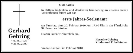 Hier finden Sie alle Traueranzeigen aus der Zeitung, die bisher für Gerhard Gehring erschienen sind. Weitere Traueranzeigen, die in der Zeitung erscheinen, werden hier ebenfalls aufgelistet