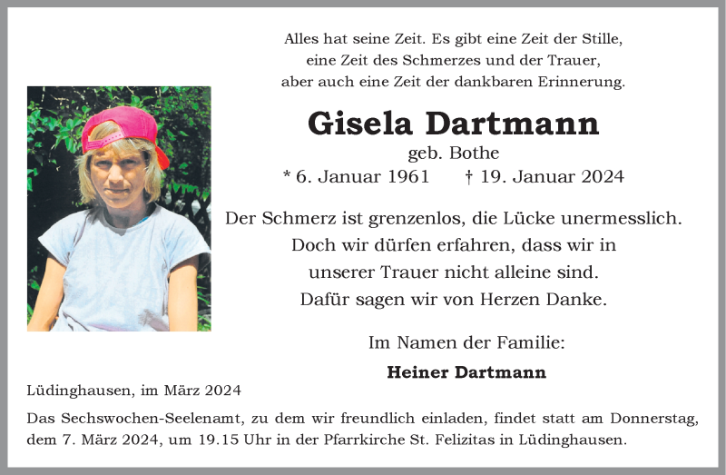 Hier finden Sie alle Traueranzeigen aus der Zeitung, die bisher für Gisela Dartmann erschienen sind. Weitere Traueranzeigen, die in der Zeitung erscheinen, werden hier ebenfalls aufgelistet