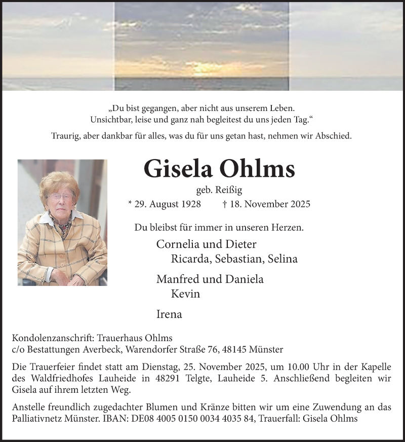 Hier finden Sie alle Traueranzeigen aus der Zeitung, die bisher für Gisela Ohlms erschienen sind. Weitere Traueranzeigen, die in der Zeitung erscheinen, werden hier ebenfalls aufgelistet