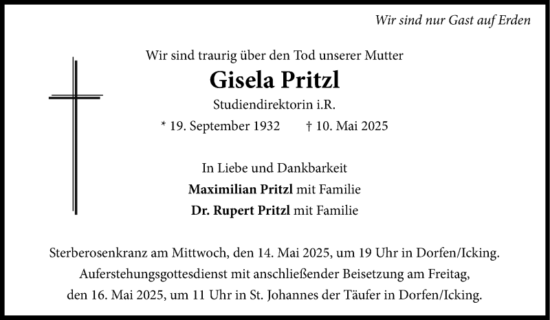 Hier finden Sie alle Traueranzeigen aus der Zeitung, die bisher für Gisela Pritzl erschienen sind. Weitere Traueranzeigen, die in der Zeitung erscheinen, werden hier ebenfalls aufgelistet