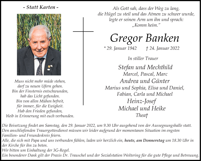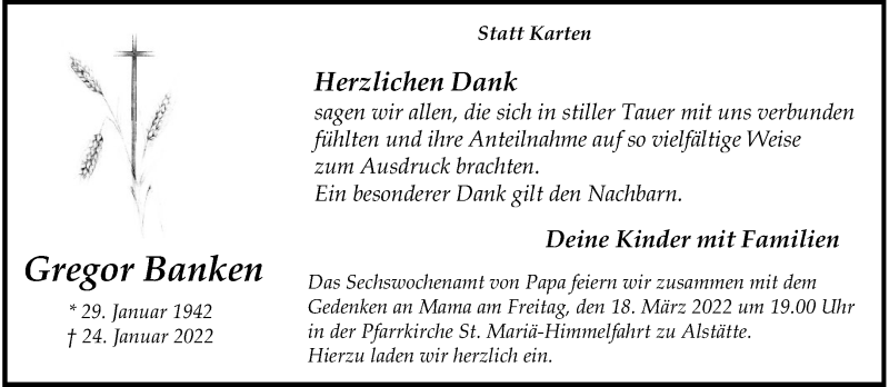 Hier finden Sie alle Traueranzeigen aus der Zeitung, die bisher für Gregor Banken erschienen sind. Weitere Traueranzeigen, die in der Zeitung erscheinen, werden hier ebenfalls aufgelistet