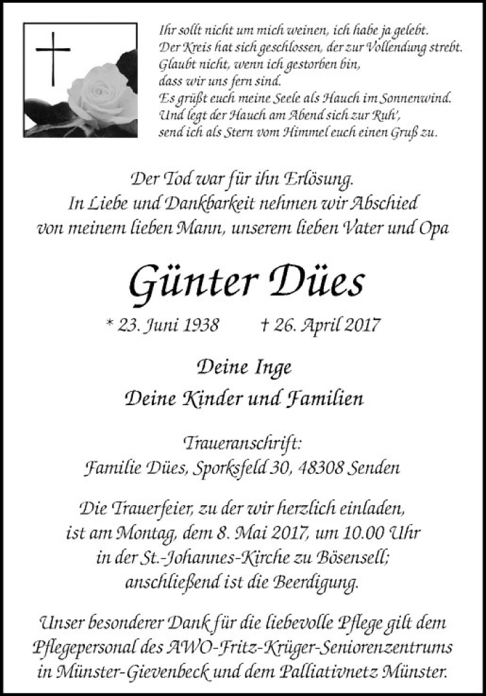 Hier finden Sie alle Traueranzeigen aus der Zeitung, die bisher für Günter Dües erschienen sind. Weitere Traueranzeigen, die in der Zeitung erscheinen, werden hier ebenfalls aufgelistet