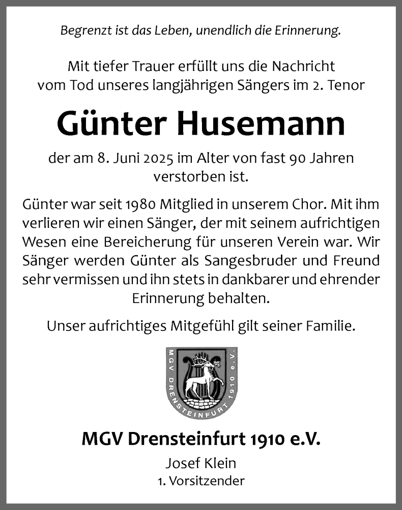 Hier finden Sie alle Traueranzeigen aus der Zeitung, die bisher für Günter Husemann erschienen sind. Weitere Traueranzeigen, die in der Zeitung erscheinen, werden hier ebenfalls aufgelistet