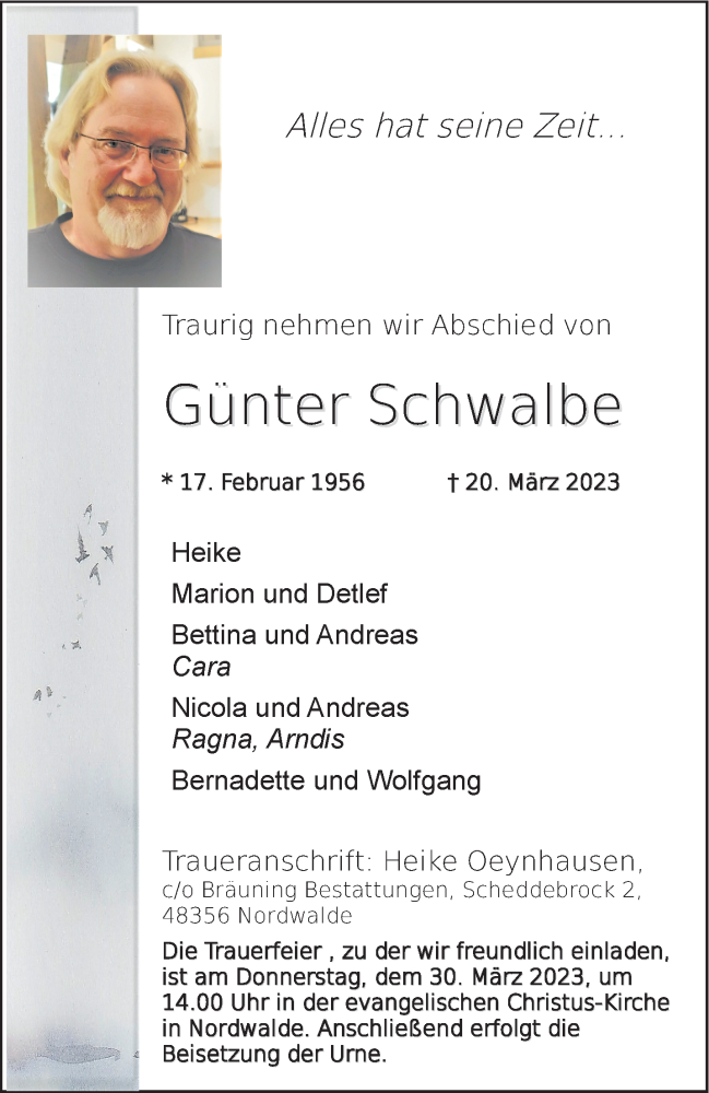 Hier finden Sie alle Traueranzeigen aus der Zeitung, die bisher für Günter Schwalbe erschienen sind. Weitere Traueranzeigen, die in der Zeitung erscheinen, werden hier ebenfalls aufgelistet