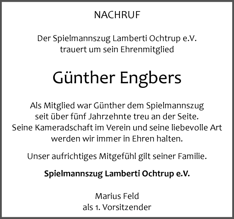 Hier finden Sie alle Traueranzeigen aus der Zeitung, die bisher für Günther Engbers erschienen sind. Weitere Traueranzeigen, die in der Zeitung erscheinen, werden hier ebenfalls aufgelistet