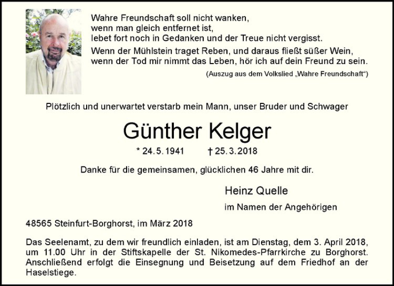 Hier finden Sie alle Traueranzeigen aus der Zeitung, die bisher für Günther Kelger erschienen sind. Weitere Traueranzeigen, die in der Zeitung erscheinen, werden hier ebenfalls aufgelistet