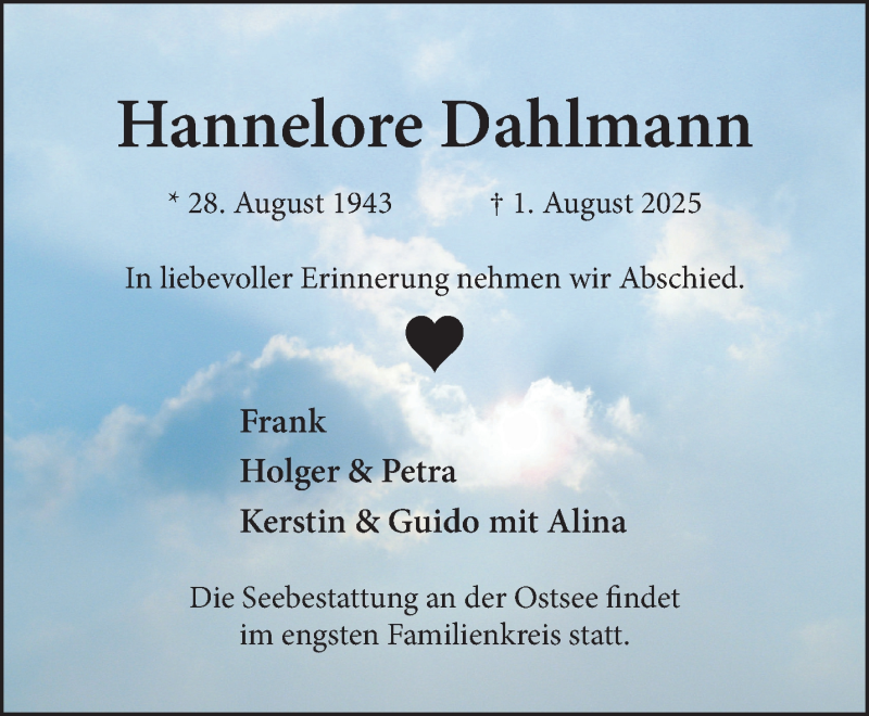 Hier finden Sie alle Traueranzeigen aus der Zeitung, die bisher für Hannelore Dahlmann erschienen sind. Weitere Traueranzeigen, die in der Zeitung erscheinen, werden hier ebenfalls aufgelistet