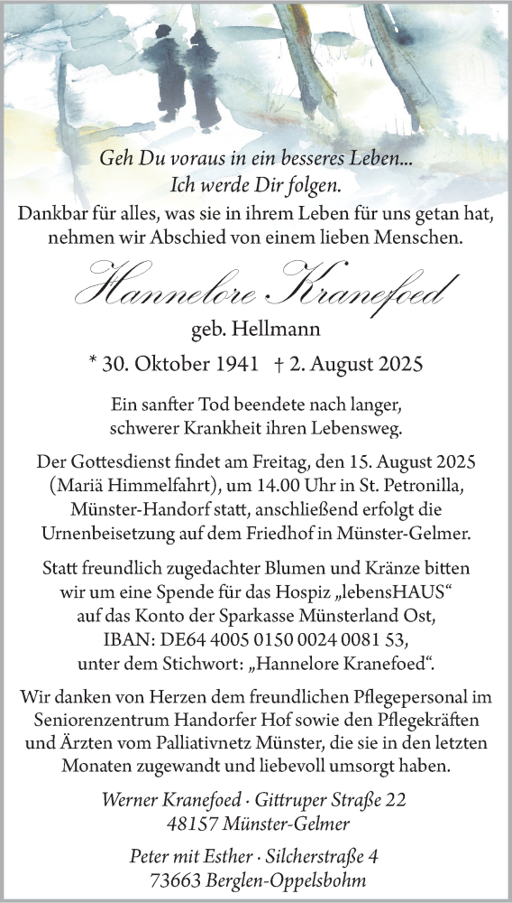 Hier finden Sie alle Traueranzeigen aus der Zeitung, die bisher für Hannelore Kranefoed erschienen sind. Weitere Traueranzeigen, die in der Zeitung erscheinen, werden hier ebenfalls aufgelistet