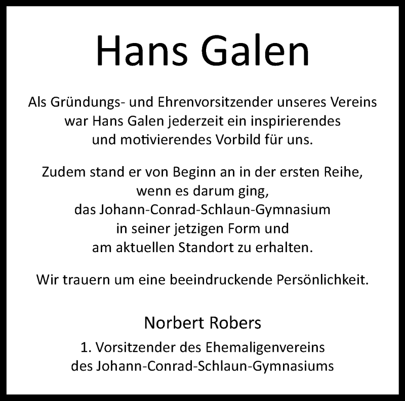 Hier finden Sie alle Traueranzeigen aus der Zeitung, die bisher für Hans Galen erschienen sind. Weitere Traueranzeigen, die in der Zeitung erscheinen, werden hier ebenfalls aufgelistet