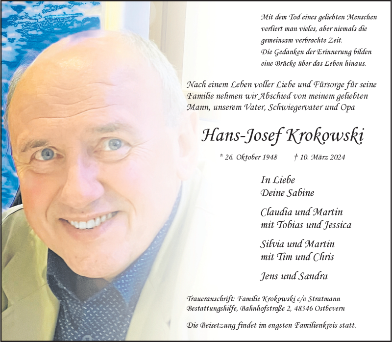 Hier finden Sie alle Traueranzeigen aus der Zeitung, die bisher für Hans-Josef Krokowski erschienen sind. Weitere Traueranzeigen, die in der Zeitung erscheinen, werden hier ebenfalls aufgelistet