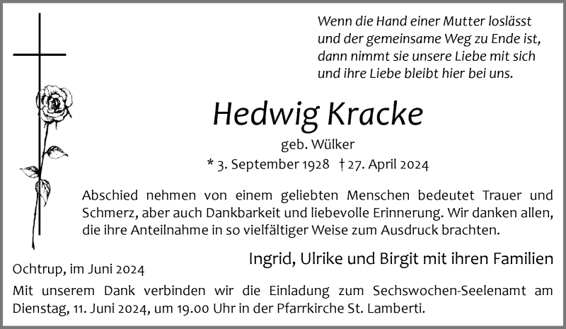 Hier finden Sie alle Traueranzeigen aus der Zeitung, die bisher für Hedwig Kracke erschienen sind. Weitere Traueranzeigen, die in der Zeitung erscheinen, werden hier ebenfalls aufgelistet