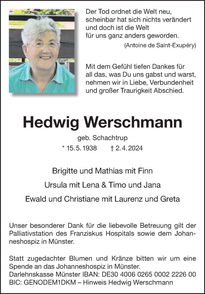 Hier finden Sie alle Traueranzeigen aus der Zeitung, die bisher für Hedwig Werschmann erschienen sind. Weitere Traueranzeigen, die in der Zeitung erscheinen, werden hier ebenfalls aufgelistet