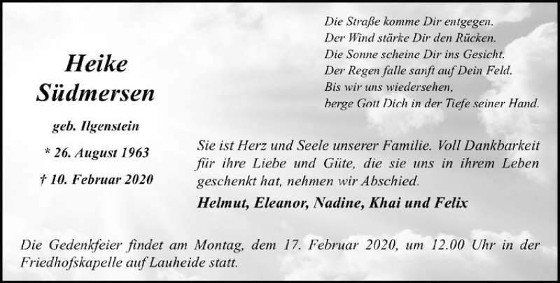 Hier finden Sie alle Traueranzeigen aus der Zeitung, die bisher für Heike Südmersen erschienen sind. Weitere Traueranzeigen, die in der Zeitung erscheinen, werden hier ebenfalls aufgelistet