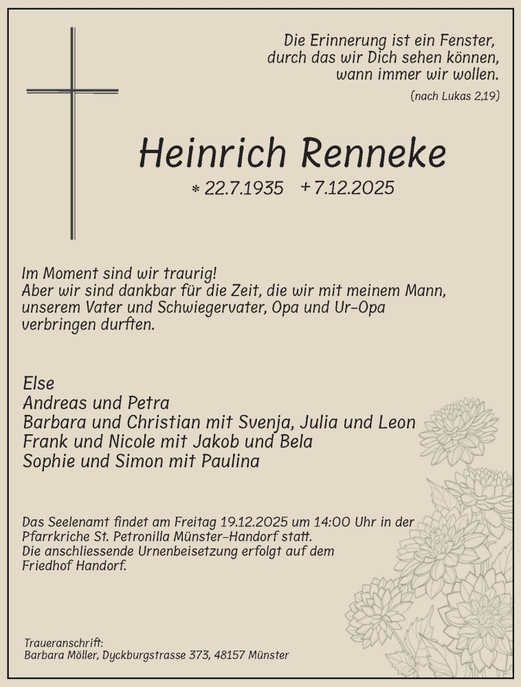 Hier finden Sie alle Traueranzeigen aus der Zeitung, die bisher für Heinrich Renneke erschienen sind. Weitere Traueranzeigen, die in der Zeitung erscheinen, werden hier ebenfalls aufgelistet