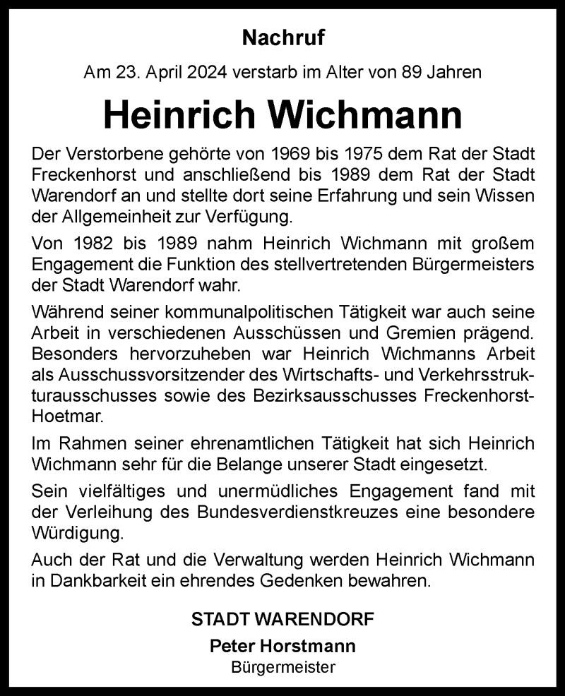 Hier finden Sie alle Traueranzeigen aus der Zeitung, die bisher für Heinrich Wichmann erschienen sind. Weitere Traueranzeigen, die in der Zeitung erscheinen, werden hier ebenfalls aufgelistet