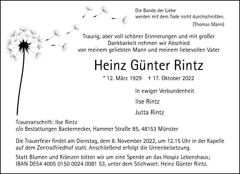 Hier finden Sie alle Traueranzeigen aus der Zeitung, die bisher für Heinz Günter Rintz erschienen sind. Weitere Traueranzeigen, die in der Zeitung erscheinen, werden hier ebenfalls aufgelistet