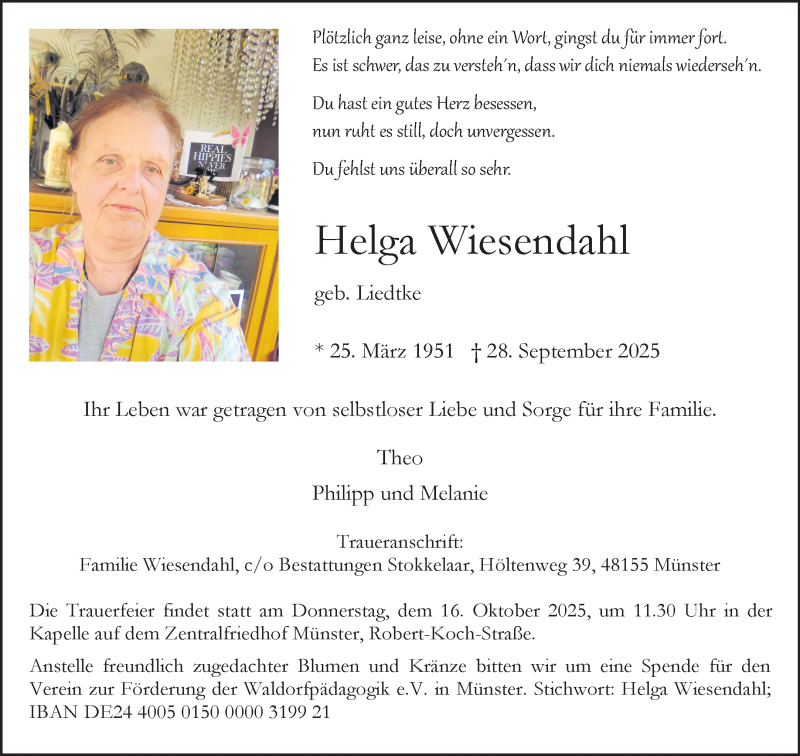 Hier finden Sie alle Traueranzeigen aus der Zeitung, die bisher für Helga Wiesendahl erschienen sind. Weitere Traueranzeigen, die in der Zeitung erscheinen, werden hier ebenfalls aufgelistet