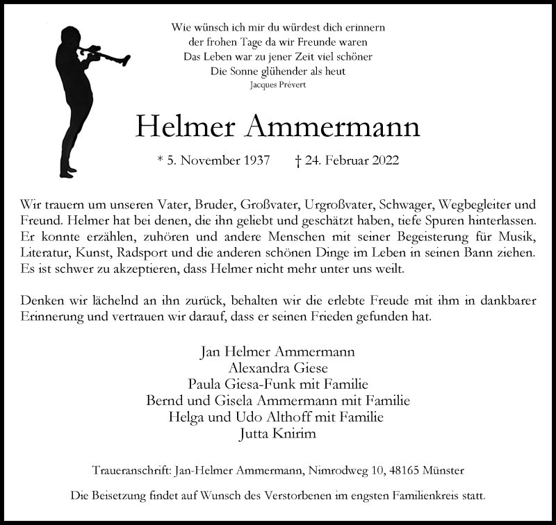 Hier finden Sie alle Traueranzeigen aus der Zeitung, die bisher für Helmer Ammermann erschienen sind. Weitere Traueranzeigen, die in der Zeitung erscheinen, werden hier ebenfalls aufgelistet