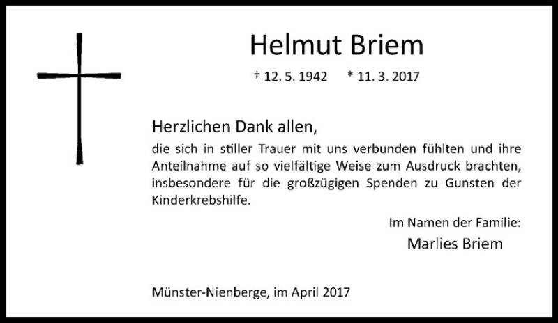 Hier finden Sie alle Traueranzeigen aus der Zeitung, die bisher für Helmut Briem erschienen sind. Weitere Traueranzeigen, die in der Zeitung erscheinen, werden hier ebenfalls aufgelistet