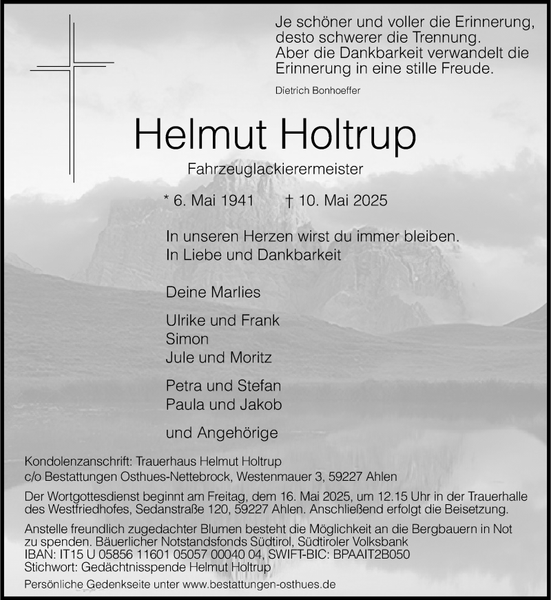 Hier finden Sie alle Traueranzeigen aus der Zeitung, die bisher für Helmut Holtrup erschienen sind. Weitere Traueranzeigen, die in der Zeitung erscheinen, werden hier ebenfalls aufgelistet