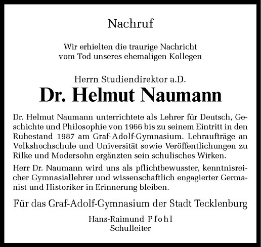 Hier finden Sie alle Traueranzeigen aus der Zeitung, die bisher für Helmut Naumann erschienen sind. Weitere Traueranzeigen, die in der Zeitung erscheinen, werden hier ebenfalls aufgelistet