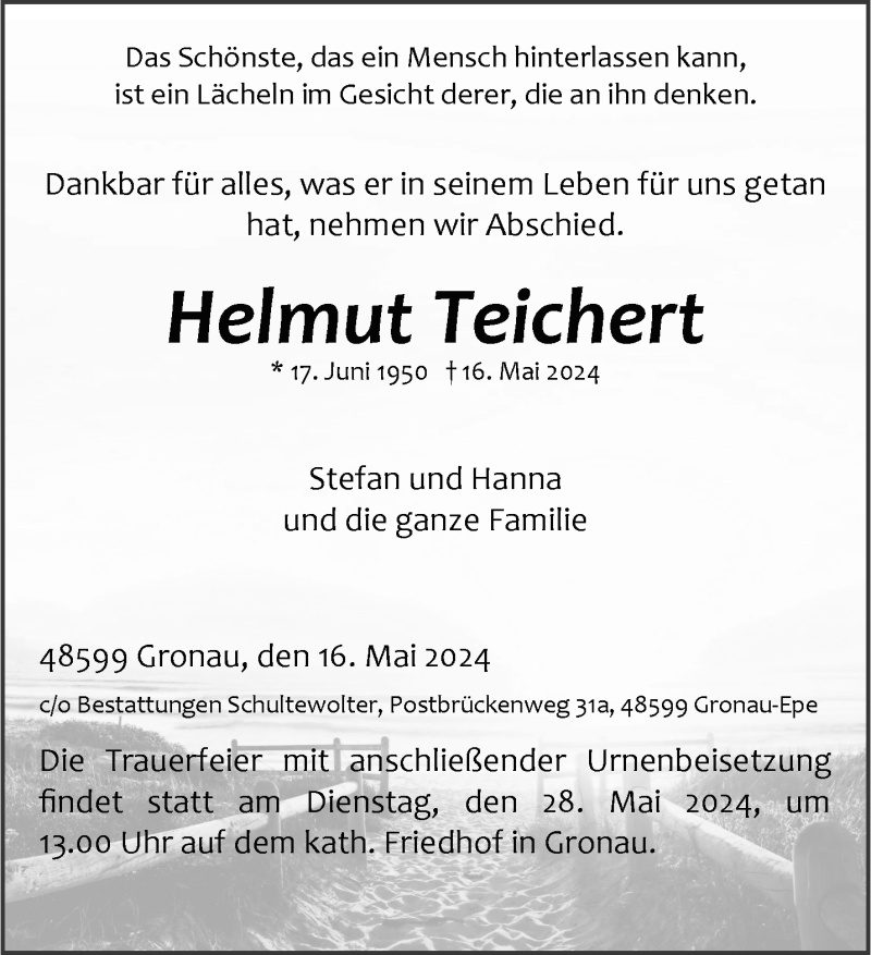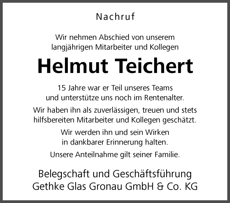 Hier finden Sie alle Traueranzeigen aus der Zeitung, die bisher für Helmut Teichert erschienen sind. Weitere Traueranzeigen, die in der Zeitung erscheinen, werden hier ebenfalls aufgelistet