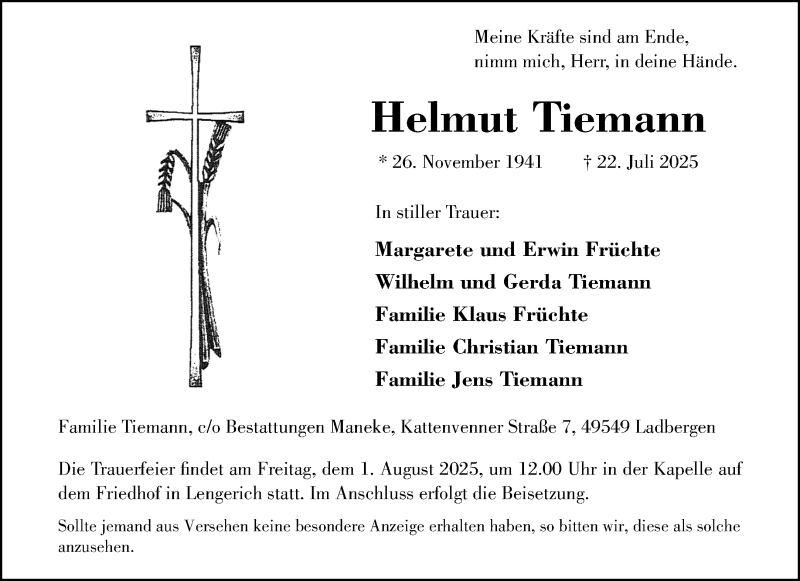 Hier finden Sie alle Traueranzeigen aus der Zeitung, die bisher für Helmut Tiemann erschienen sind. Weitere Traueranzeigen, die in der Zeitung erscheinen, werden hier ebenfalls aufgelistet