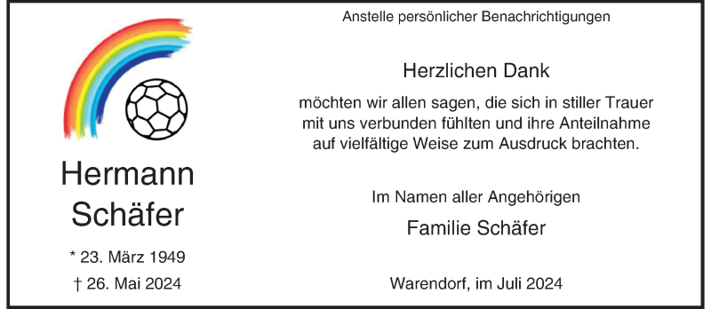 Hier finden Sie alle Traueranzeigen aus der Zeitung, die bisher für Hermann Schäfer erschienen sind. Weitere Traueranzeigen, die in der Zeitung erscheinen, werden hier ebenfalls aufgelistet
