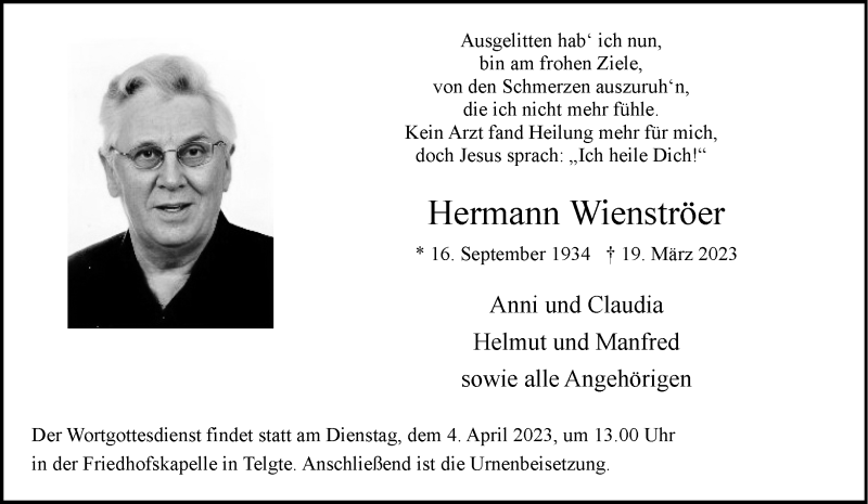 Hier finden Sie alle Traueranzeigen aus der Zeitung, die bisher für Hermann Wienströer erschienen sind. Weitere Traueranzeigen, die in der Zeitung erscheinen, werden hier ebenfalls aufgelistet