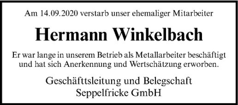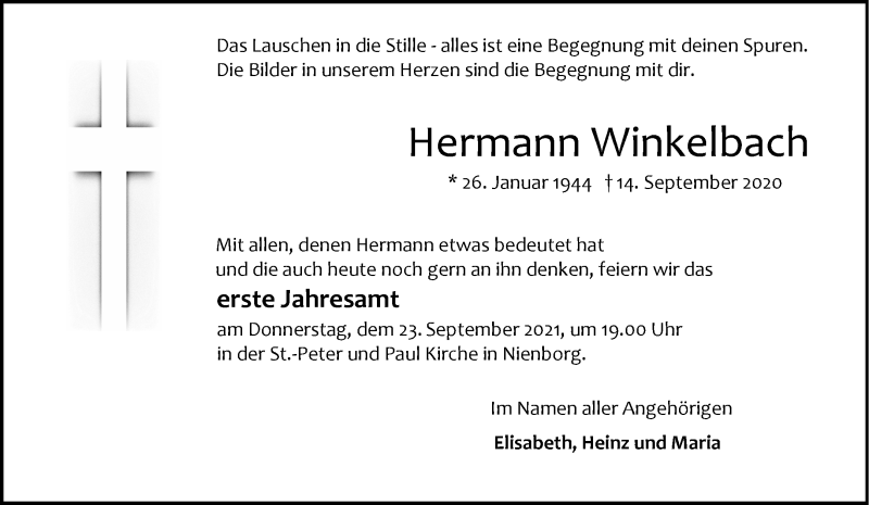 Hier finden Sie alle Traueranzeigen aus der Zeitung, die bisher für Hermann Winkelbach erschienen sind. Weitere Traueranzeigen, die in der Zeitung erscheinen, werden hier ebenfalls aufgelistet