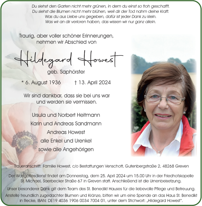 Hier finden Sie alle Traueranzeigen aus der Zeitung, die bisher für Hildegard Howest erschienen sind. Weitere Traueranzeigen, die in der Zeitung erscheinen, werden hier ebenfalls aufgelistet