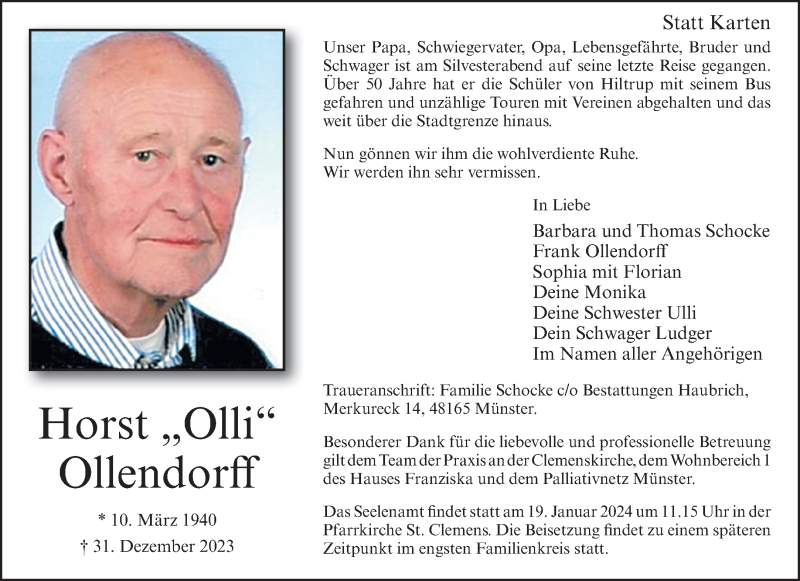 Hier finden Sie alle Traueranzeigen aus der Zeitung, die bisher für Horst Ollendorff erschienen sind. Weitere Traueranzeigen, die in der Zeitung erscheinen, werden hier ebenfalls aufgelistet