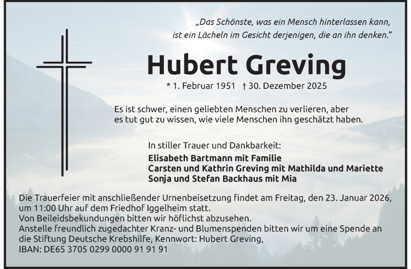 Hier finden Sie alle Traueranzeigen aus der Zeitung, die bisher für Hubert Greving erschienen sind. Weitere Traueranzeigen, die in der Zeitung erscheinen, werden hier ebenfalls aufgelistet