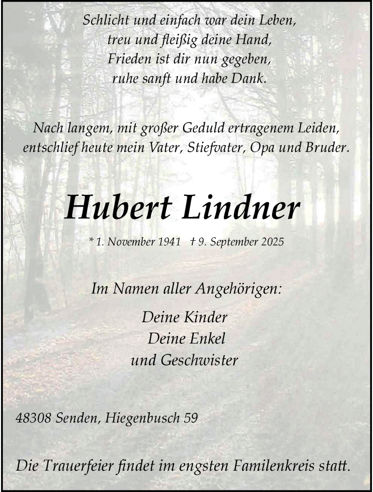Hier finden Sie alle Traueranzeigen aus der Zeitung, die bisher für Hubert Lindner erschienen sind. Weitere Traueranzeigen, die in der Zeitung erscheinen, werden hier ebenfalls aufgelistet