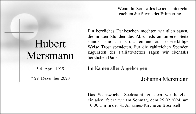 Hier finden Sie alle Traueranzeigen aus der Zeitung, die bisher für Hubert Mersmann erschienen sind. Weitere Traueranzeigen, die in der Zeitung erscheinen, werden hier ebenfalls aufgelistet
