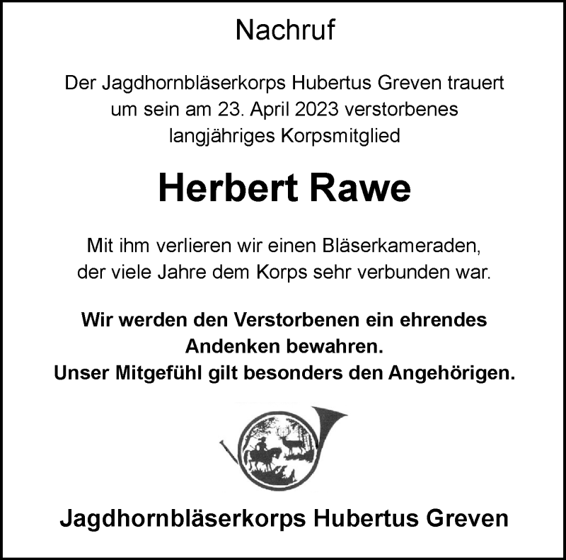 Hier finden Sie alle Traueranzeigen aus der Zeitung, die bisher für Hubertus Rawe erschienen sind. Weitere Traueranzeigen, die in der Zeitung erscheinen, werden hier ebenfalls aufgelistet