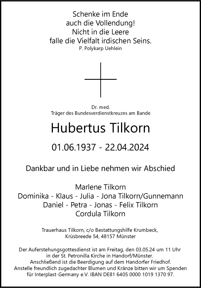 Hier finden Sie alle Traueranzeigen aus der Zeitung, die bisher für Hubertus Tilkorn erschienen sind. Weitere Traueranzeigen, die in der Zeitung erscheinen, werden hier ebenfalls aufgelistet