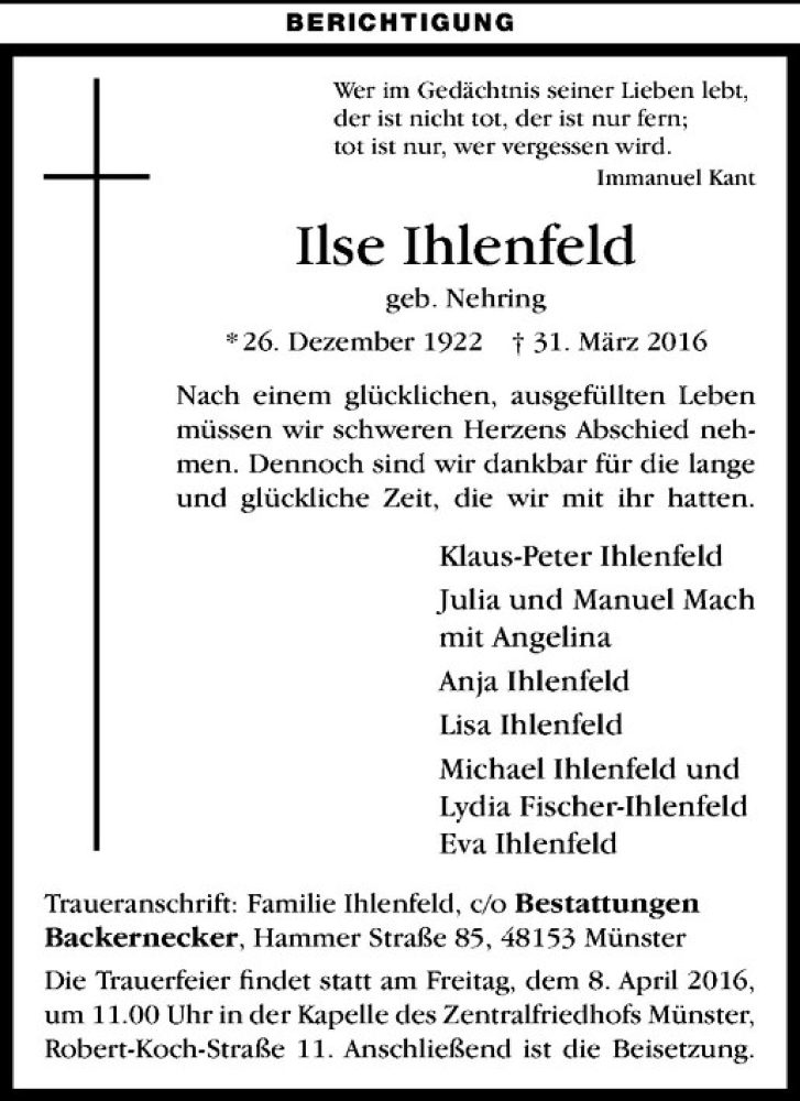 Hier finden Sie alle Traueranzeigen aus der Zeitung, die bisher für Ilse Ihlenfeld erschienen sind. Weitere Traueranzeigen, die in der Zeitung erscheinen, werden hier ebenfalls aufgelistet