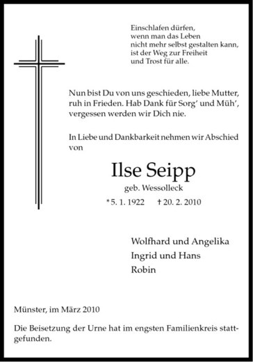 Hier finden Sie alle Traueranzeigen aus der Zeitung, die bisher für Ilse Seipp erschienen sind. Weitere Traueranzeigen, die in der Zeitung erscheinen, werden hier ebenfalls aufgelistet
