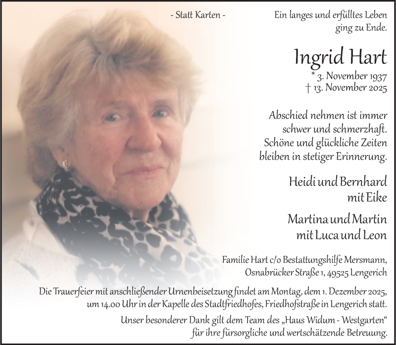 Hier finden Sie alle Traueranzeigen aus der Zeitung, die bisher für Ingrid Hart erschienen sind. Weitere Traueranzeigen, die in der Zeitung erscheinen, werden hier ebenfalls aufgelistet