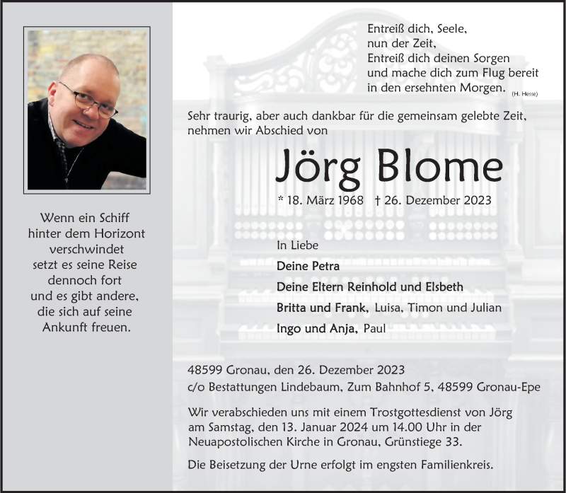 Hier finden Sie alle Traueranzeigen aus der Zeitung, die bisher für Jörg Blome erschienen sind. Weitere Traueranzeigen, die in der Zeitung erscheinen, werden hier ebenfalls aufgelistet