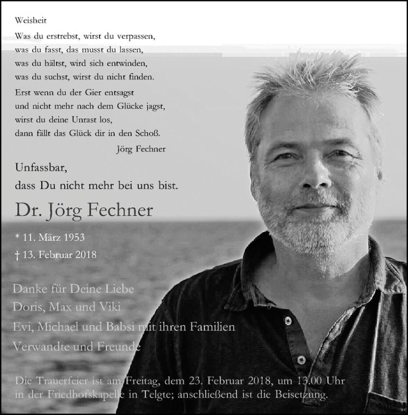 Hier finden Sie alle Traueranzeigen aus der Zeitung, die bisher für Jörg Fechner erschienen sind. Weitere Traueranzeigen, die in der Zeitung erscheinen, werden hier ebenfalls aufgelistet