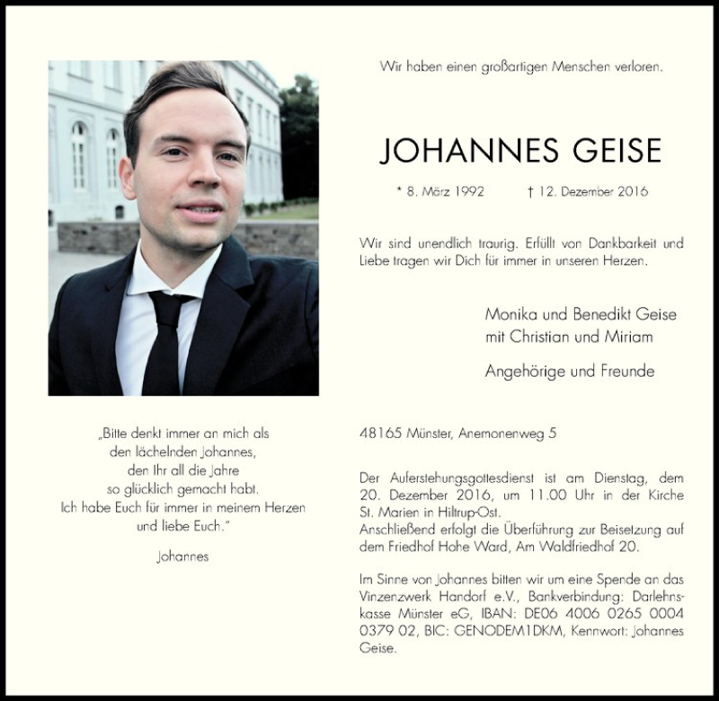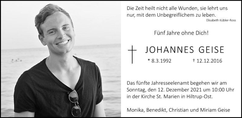 Hier finden Sie alle Traueranzeigen aus der Zeitung, die bisher für Johannes Geise erschienen sind. Weitere Traueranzeigen, die in der Zeitung erscheinen, werden hier ebenfalls aufgelistet