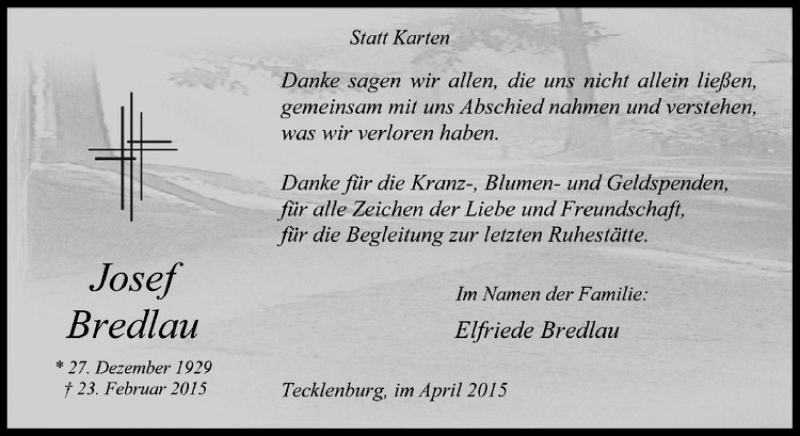 Hier finden Sie alle Traueranzeigen aus der Zeitung, die bisher für Josef Bredlau erschienen sind. Weitere Traueranzeigen, die in der Zeitung erscheinen, werden hier ebenfalls aufgelistet